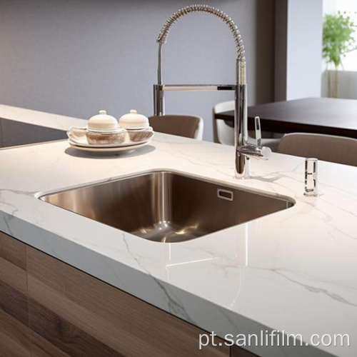 Bancadas de quartzo ou pedra projetada são materiais decorativos de alta classe frequentemente vistos em residências luxuosas, hotéis, estruturas de escritórios de alto padrão e locais comerciais. Eles são apreciados por sua alta dureza, composição densa, texturas variadas e resistência a manchas e arranhões. Ainda assim, eles podem ser danificados. Objetos pontiagudos podem causar microarranhões que afetam seu brilho, impactos fortes podem resultar em danos nas bordas e a exposição prolongada a pigmentos fortes pode deixar manchas difíceis. A película protetora de quartzo ou pedra projetada, produto protetor de alto desempenho à base de PE, é desenvolvida com base nessas características, com foco na manutenção do brilho e prevenção de manchas.